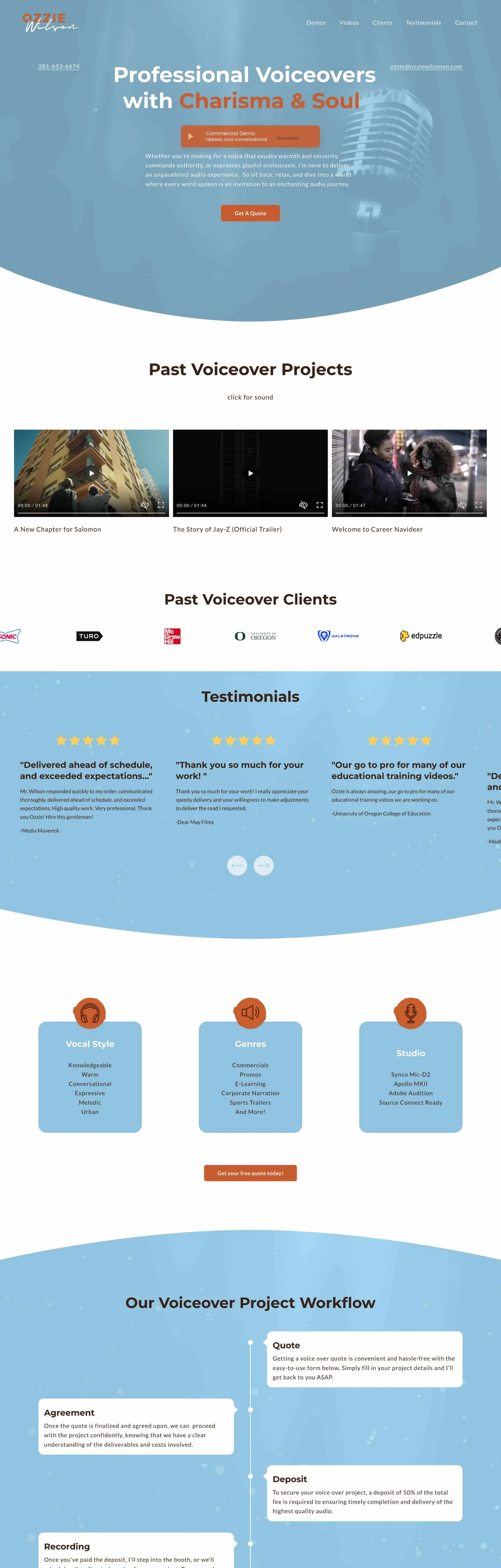 Voice actor Brandon Hunt needed to elevate his online presence with a VIP Design Day. Here's the sleek one-page website that landed him on top voice actor site lists.